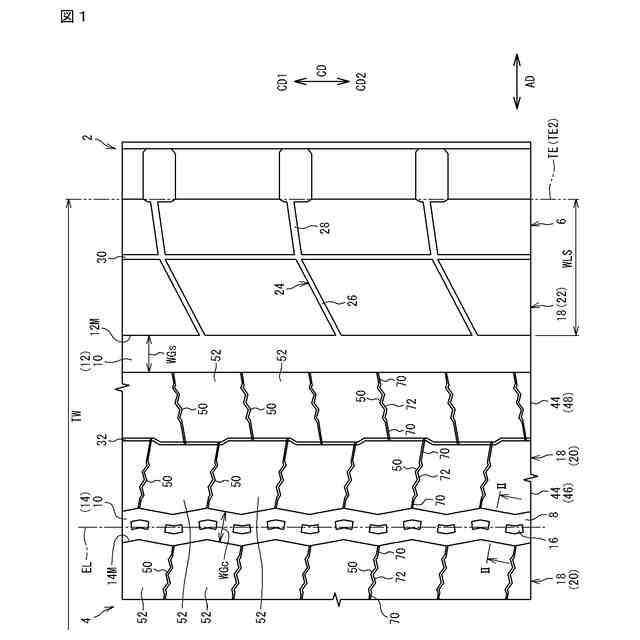 本発明において、タイヤを正規リムに組み、タイヤの内圧を正規内圧に調整し、このタイヤに荷重をかけていない状態は、正規状態と称される。