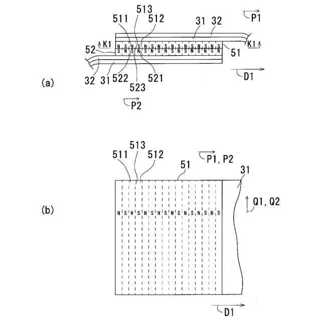 なお、強磁性体シートとは、永久磁石の性質を示すマグネットシートと、自らは永久磁石の性質を示さないが、鉄等の磁性物質を磁着する軟磁性シートとの両方を含む意味である。