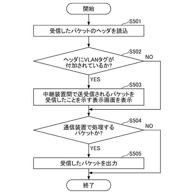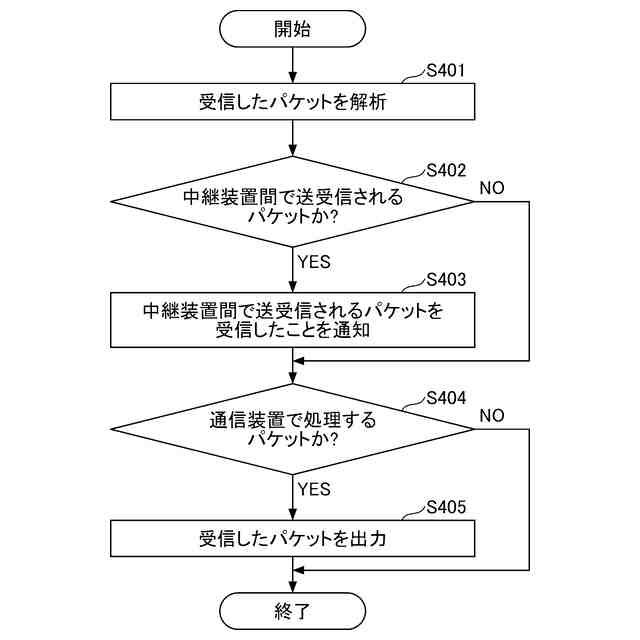 前記ネットワークから受信したパケットが、中継装置間で送受信されるパケットであるかを判定する処理と、