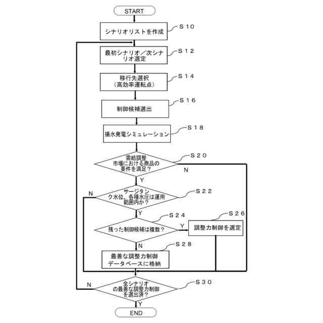 第1揚水機の初期発電量が目的発電量に達するまでの時系列な発電状態を示す複数の第1シナリオと、第2揚水機の初期発電量が目的発電量に達するまでの時系列な発電状態を示す複数の第2シナリオと、を生成するシナリオ生成工程と、