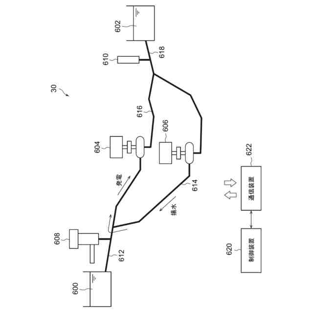 図1には、更に複数の実際の揚水発電所プラント30が模式的に図示されている。揚水発電所プラント30は、循環水路を構成可能な複数の揚水機で構成される。揚水発電所プラント30は、後述するように、発電動作、揚水動作、循環動作を有する。なお、本実施形態では、揚水発電所プラントを揚水発電所、揚水発電プラントと称する場合がある。