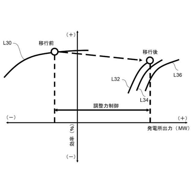 発電運転への移行後に最も高い高効率点を選択する例を示す図。