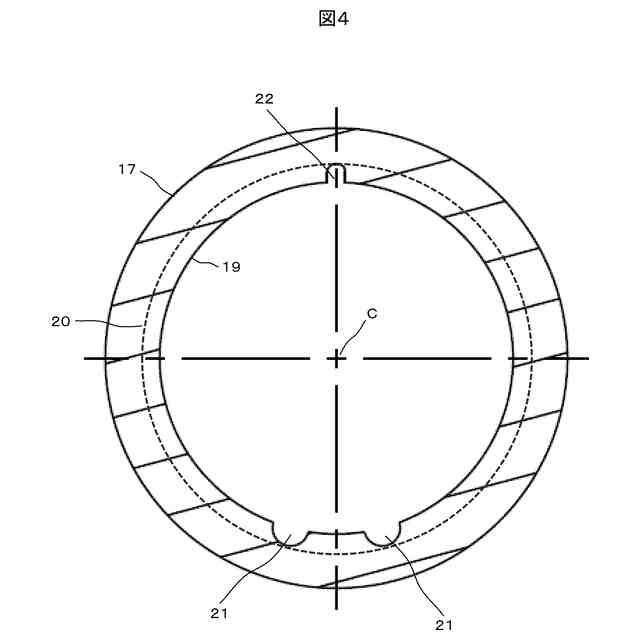 前記環状溝は円環状であり、前記内部連通溝と前記外部連通溝は、互いに反対側の位置に形成されている
