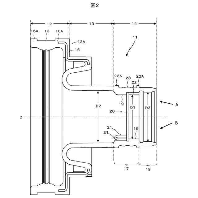 前記ブーツバンド取付部には、両端に半径方向で外側に延びる壁部が形成されており、前記壁部で挟まれて形成された前記ブーツバンド取付部を前記ブーツバンドによって締め付けることで、前記ブーツ側嵌装領域部17を内側に向けて押圧する