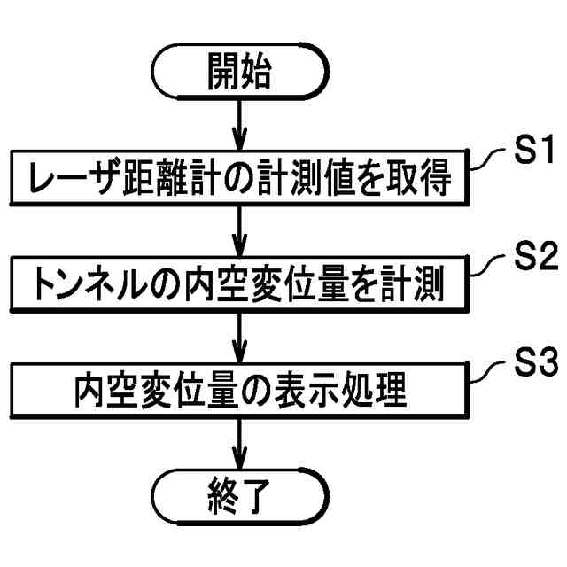 また、本発明は、トンネルの壁面に固定される治具に配設されている複数のレーザ距離計が、前記トンネルの壁面にレーザを照射するステップと、処理装置の計測部が、前記レーザ距離計と前記レーザの照射位置との距離を示す距離データを解析して、前記トンネルの内空変位量を計測するステップと、を備える内空変位計測方法である。