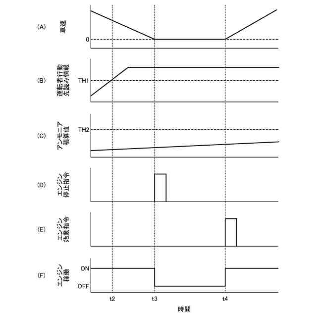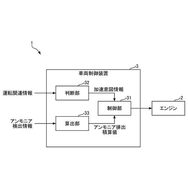 【解決手段】車両制御装置3は、所定条件成立時にエンジン停止制御を行う制御部31と、運転者の加速意図を判断する判断部32と、アンモニア排出積算値を算出する算出部33と、を備える。制御部31は、アンモニア排出積算値が所定の閾値TH2より高く、かつ、運転者に加速意図があると判断された場合に、エンジン停止制御を中止または禁止する。