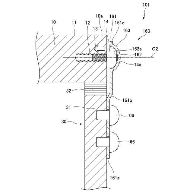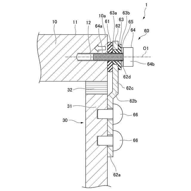 前記載置部にねじ込まれるとともに、前記Oリング及び前記ブラケットに挿通される軸部、及び前記軸部の端部に設けられるとともに、前記ブラケットを前記Oリングに押し付け可能な頭部を有するボルトを有し、