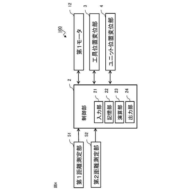 前記回転出力軸と前記回転工具取り付け部の相対位置を測定する第2距離測定部と、
