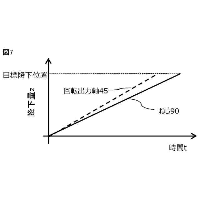 実施の形態2に係るねじ締め装置における時間と降下量との関係を示す図である。