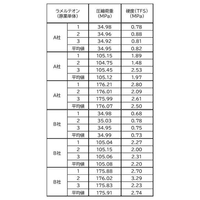 前記圧縮荷重が0~200MPaの範囲内の前記任意の2点の圧縮荷重に加えて、更に任意の1点の圧縮荷重を追加した任意の3点の圧縮荷重を比較した際に、