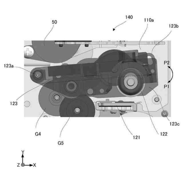 前記固定機構は、前記少なくとも1つの歯車と係合して、前記歯車列の動きを固定する固定部材を備える、