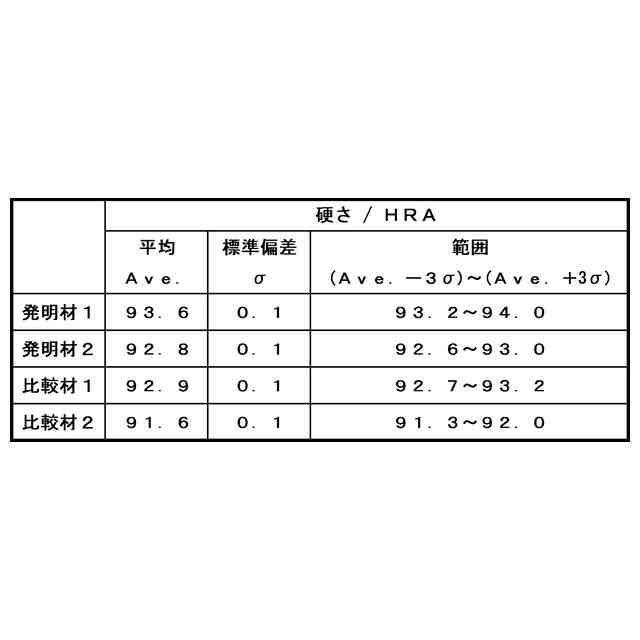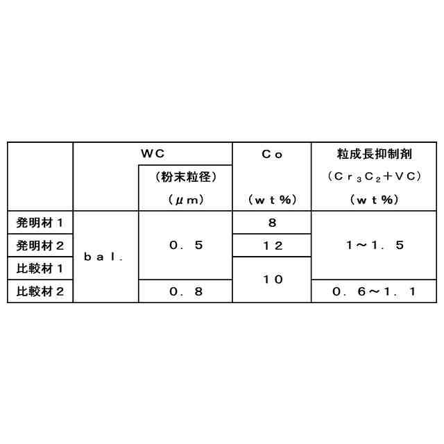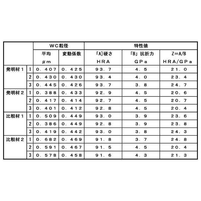 また、特許文献1内では、抗折力の測定(抗折試験)時の破壊起点としてWC粒子の凝集体を挙げており、WCの凝集は超硬合金内のCo濃度の不均一さが原因と推定し、Co濃度のばらつきを小さくすることで、WCの凝集を防止し、抗折力のばらつきが低減できると記載されている。