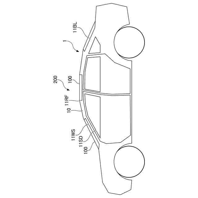 実施形態のフラットハーネス付き車両用窓ガラスシステム200を取り付けた車両1の構成の一例を示す図である。