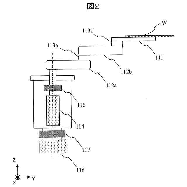 真空内ウェハ搬送ロボット11を横から見た概要図である。