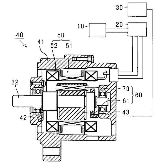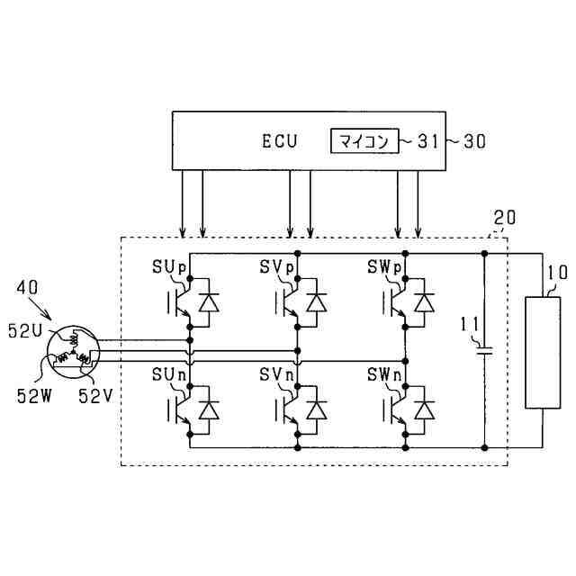 まず、図1を用いて、回転電機を備える制御システムについて説明する。制御システムは、直流電源10、インバータ20、制御装置30及び回転電機40を備えている。回転電機40は、自励式巻線界磁型の同期機である。例えば、回転電機40、インバータ20及び制御装置30は機電一体型駆動装置として構成されていてもよいし、回転電機40、インバータ20及び制御装置30それぞれが各コンポーネントで構成されていてもよい。