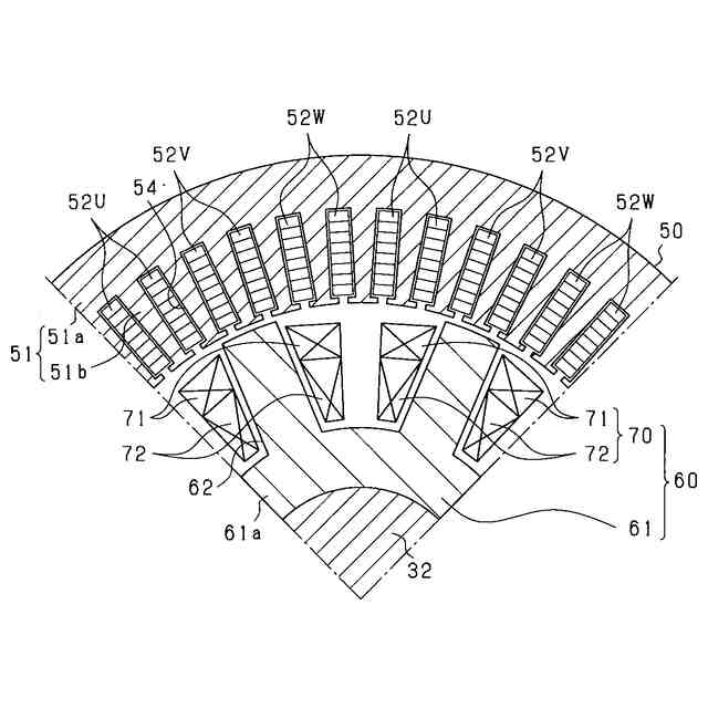 前記各主極部に周回させた状態で設けられている界磁巻線(70)と、