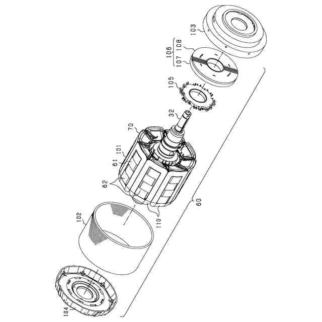 ロータ主部において巻線ユニットを分解して示す斜視図。