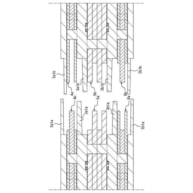 前記第1櫛歯部は、分割された一方側の前記複数層の磁性体が当該分割方向に互いにずれることで形成され、