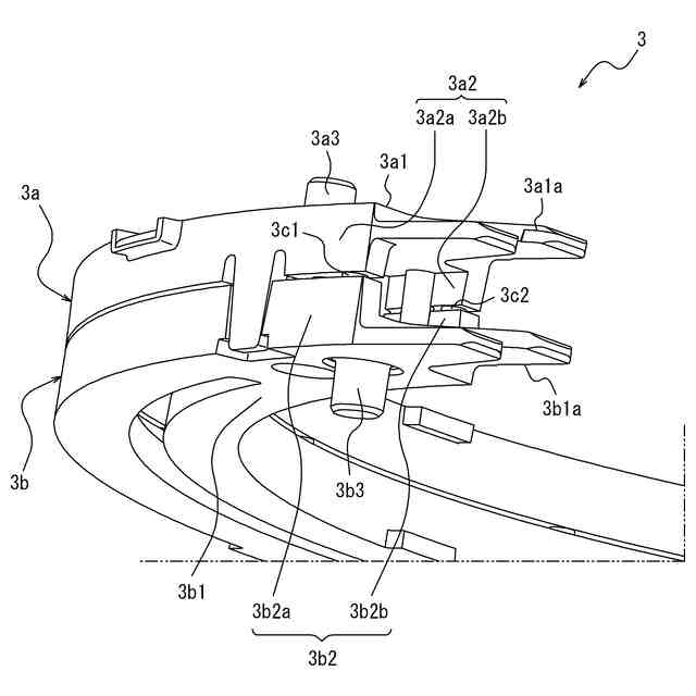 前記第3磁性部は、前記積層方向に積層される複数層の磁性体であり、前記積層方向に垂直な分割方向において分割され、第3櫛歯部及び第3嵌合部を有し、