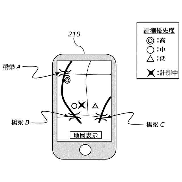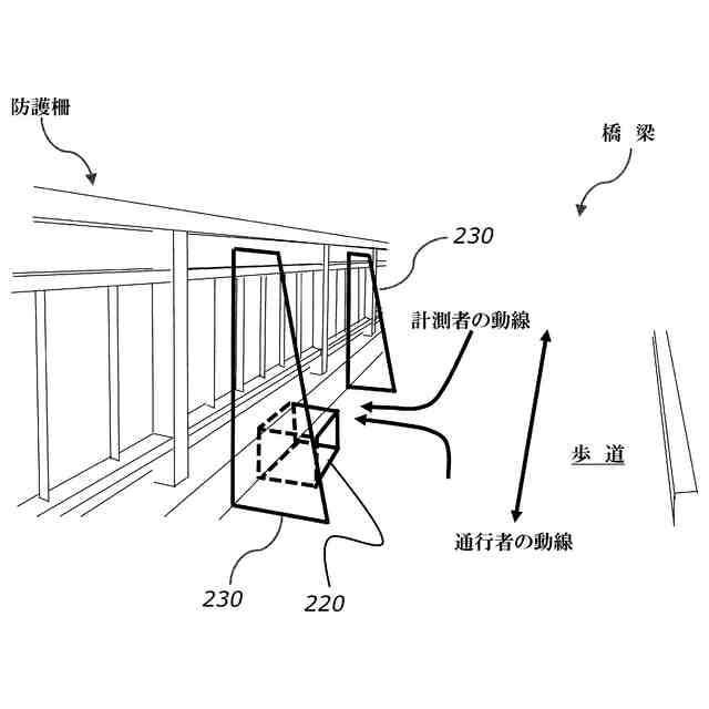 ところが、橋梁のうち特定の位置(例えば、スパン中央など)で計測することが望ましいところ、専門家でない通行者はスマートフォンを設置すべき位置を的確に判断することができない。また、同じ位置で繰り返し計測することによってはじめてその橋梁の変化を把握することができるが、前回の計測者がスマートフォンを設置した場所は不明であり、そのため毎回違う位置で計測することになる。さらに、橋梁上に単にスマートフォンを載置するだけでは正しい計測が実施されず、しかも計測ごとに計測条件が異なることも考えられる。