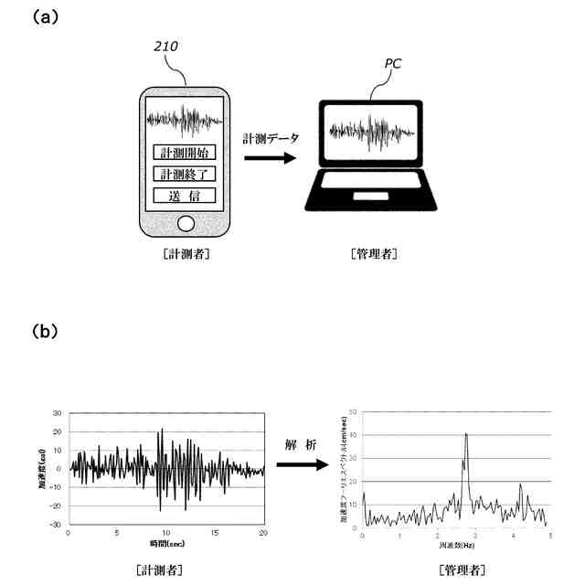 非特許文献1によって、スマートフォン内蔵の加速度センサでも十分に橋梁の固有振動特性を把握できることが実験的に示された。しかしながら、充電を必要とするスマートフォンを定常的に橋梁に設置することは現実的ではない。例えば、橋梁を通行する者が所定時間だけ自身のスマートフォンで計測することとし、多くの通行者によって数多くの計測結果を得ることによって橋梁の健全度を評価するような運用が、スマートフォンを利用した計測に適している。