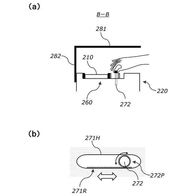 前記回転軸は、外周にピニオンが設けられるとともに、前記長孔の中で前記ラックと該ピニオンが噛み合うように配置され、