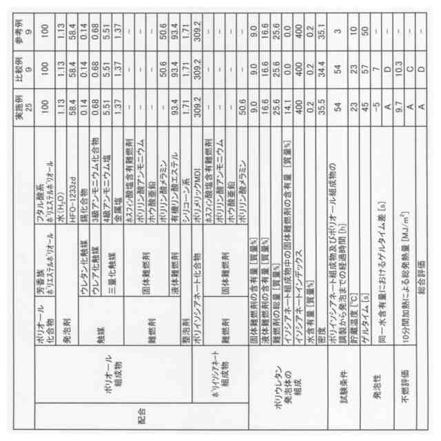 また、国際公開第2020/110332号(特許文献2)には、ポリオールを含む組成物Aとポリイソシアネートを含む組成物Bとから構成され、かかるポリオールとポリイソシアネートとの反応と、発泡剤による発泡とにより、ポリウレタンフォームが形成される発泡性組成物であって、前記組成物Aに、触媒として、少なくとも三量化触媒が含まれるとともに、有機ホスフィン酸金属塩が、前記ポリオールの50質量部に対して30質量部以上の割合で、前記組成物A及び前記組成物Bの少なくとも何れか一方に含まれる、不燃性ポリウレタンフォーム用発泡性組成物が記載されている。
