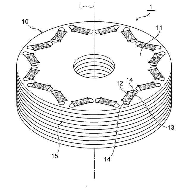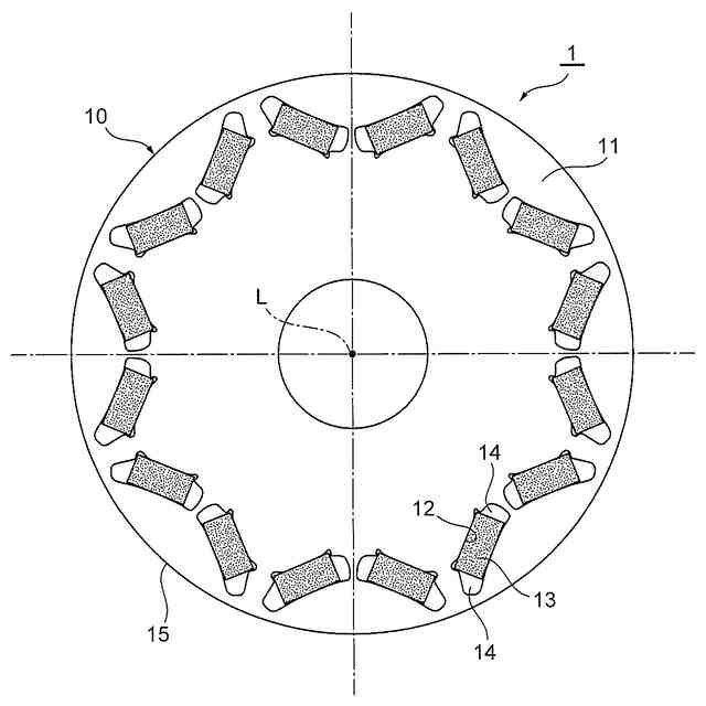 以下、図面を参照して本発明に係る電動機の実施形態について説明する。本実施形態の電動機1は、例えばハイブリッド自動車や電気自動車の駆動源として用いられるものであり、磁石(永久磁石)13をロータコア11の内部に埋め込んでなる磁石埋め込み型モータ(IPMモータ)である。IPMモータの場合、コイルと磁石の吸引力/反発力に起因するマグネットトルクに加えてリラクタンストルクを活用することができる。