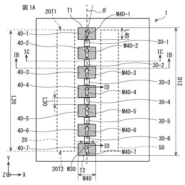 図1Bは、図1Aに示した磁気センサの断面構成例を表す第1の断面図である。