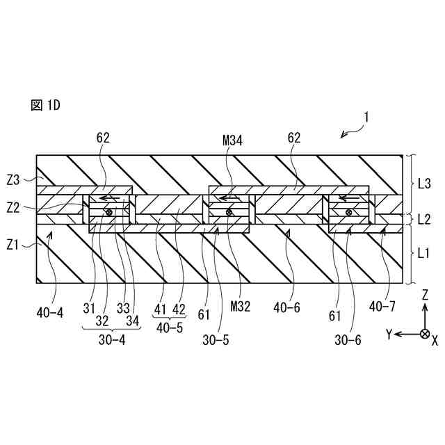 図1Dは、図1Aに示した磁気センサの断面構成例を表す第3の断面図である。