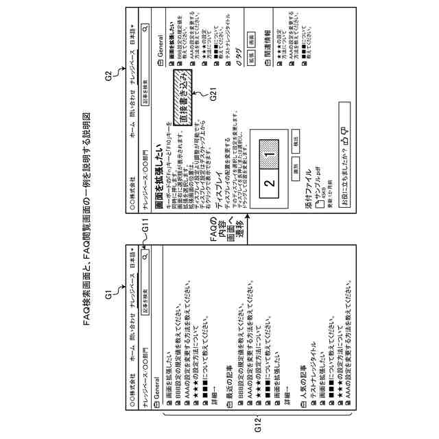 図1は、FAQ検索画面と、FAQ閲覧画面の一例を説明する説明図である。