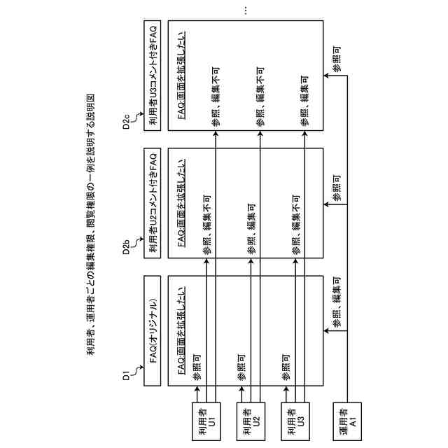 例えば、ユーザ側では、FAQの記載への疑問点について運用者側へ問い合わせるために、FAQの記載箇所と、その記載箇所における疑問点等を記述した問い合わせ文書を作成するなどの煩雑な作業を要することとなる。また、運用者側では、ユーザが作成した問い合わせ文書の記述内容から、ユーザが疑問に思った記載箇所と、その記載箇所をどのように改善したら良いかとを特定する作業を要することとなる。