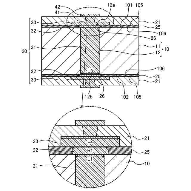 本開示によれば、無機層と有機層との接合界面において導体または無機基材にかかる応力を低減することができる。