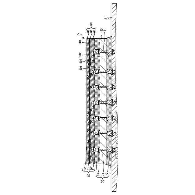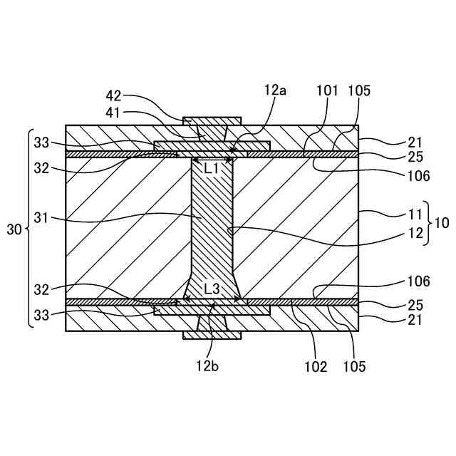 本開示は、無機層と有機層との接合界面において導体または無機基材にかかる応力を低減することができる技術を提供する。