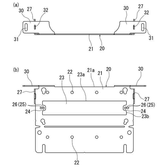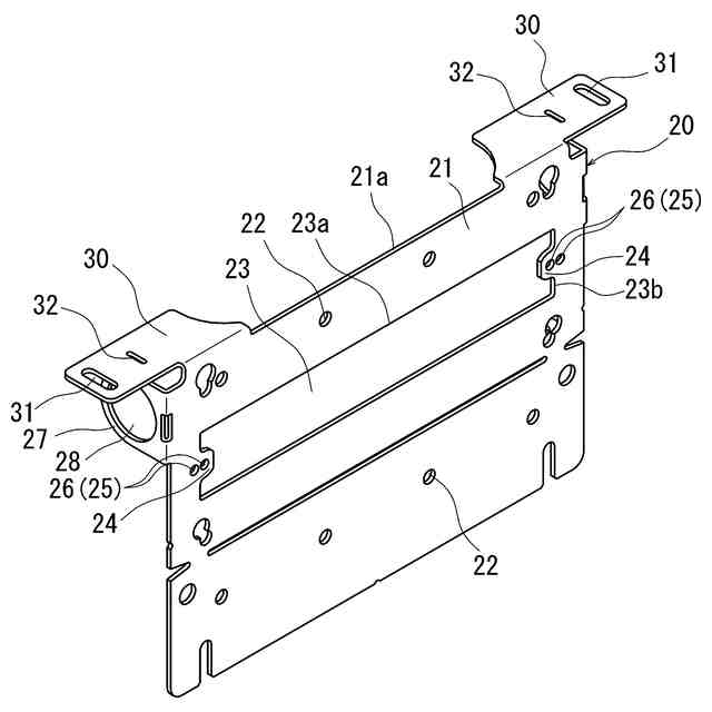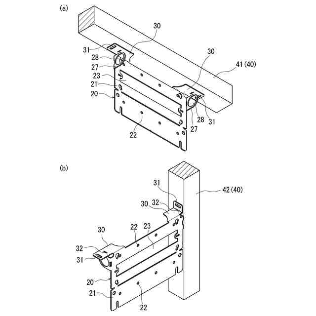 第2器具固定部が、第1器具固定部の一対の雌ネジ部よりも大きい間隔で対向する前記一対の雌ネジ部を一組として、一組備え、または当該一対の対向方向と直交する方向に並設された複数組を備えている。