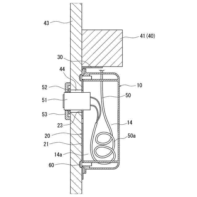 前記ボックスカバーは、その閉鎖部が前記開口の一部を閉鎖し、前記配線ボックスの内部空間を外部に臨ませる長方形状の透孔の長辺の延びる方向が前記配線ボックスの長辺側に位置して対向する長辺側周壁に沿う状態で、前記配線ボックスに取着されており、
