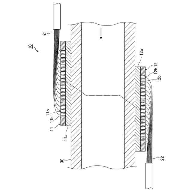 従来、配管内を流れる流体の流量又は流速を計測(以下、流体計測と称す)する、クランプオン型の超音波流量計が提供されている。クランプオン型の超音波流量計は、配管の外周面にクランプするだけで、流体計測が行える。このため、流量計設置のための配管の切断が不要であり、既設の配管に対して後付けが容易であるという利点がある。また、超音波流量計が流体に触れることがないため、流体へのコンタミ、又は、流量計自体の腐食を防止することができる。このような、クランプオン型の超音波流量計は、例えば、特許文献1に開示されている。