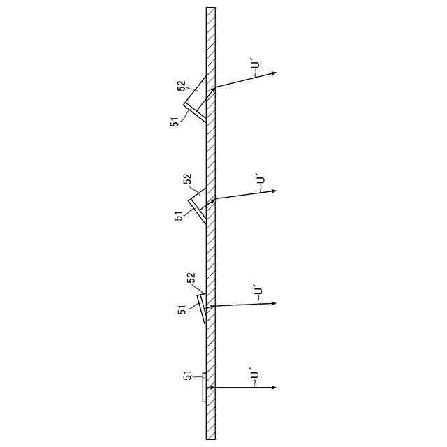 フェーズドアレイ超音波送受信器を固定した状態において、超音波の出射角度の変化の様子を示す図である。