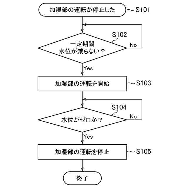 しかしながら、特許文献1の加湿器では、加湿運転によって貯水容器内の水が消費されて水位が下がる場合、ユーザに対して給水が必要であることを報知するものの、例えば、加湿運転が停止した状態で水位が大きく変わらない場合にはユーザに対しては何ら報知されない。よって、貯水容器内の水が一定期間放置されたとしてもユーザが気づかずに、上述の問題が発生してしまうおそれがある。