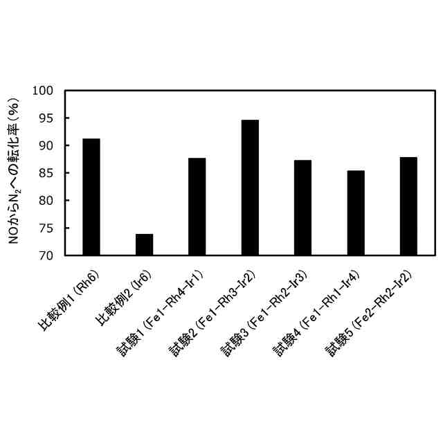該触媒金属ナノ粒子に、ロジウムの総物質量に対して、30から50 mol%の範囲の鉄と、30から90 mol%の範囲のイリジウムとが固溶している、
