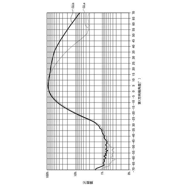 図7は、第1方向極角度と、動作する第1液晶パネルの光の透過率と、の関係を示すグラフである。
