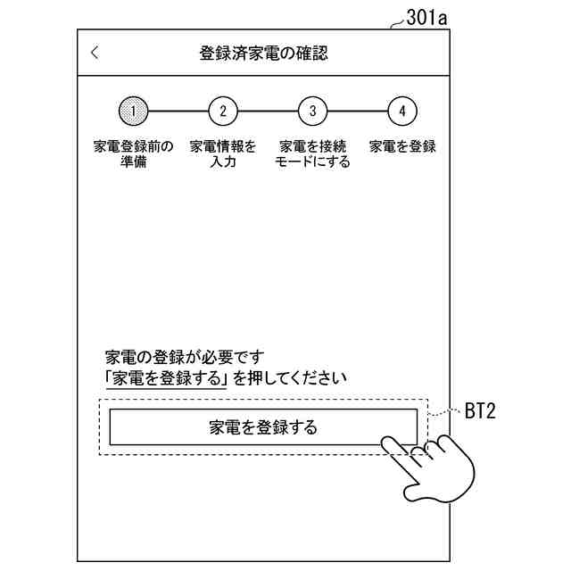 前記アプリケーションにより管理する対象となる前記家電機器を登録するステップと、