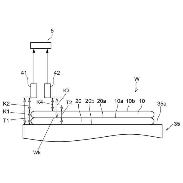 他方、ウェーハと支持基板を合わせた総厚をリアルタイむ、で測定したとしても、支持基板の厚みばらつきにより、実際のウェーハの厚みは仕上げ厚みにならないことも懸念される。