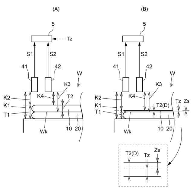 該第1測定器、及び、該第2測定器は、非接触により厚みを測定可能とする、