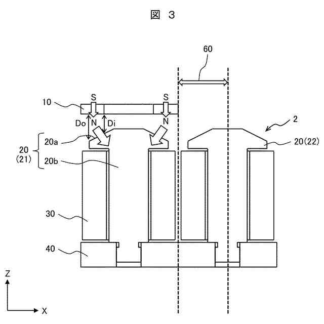 また、搬送装置では、被搬送体を安定して搬送するとともに、搬送時間を短縮し、搬送装置の駆動時の発熱を抑制することも重要である。このためには、搬送装置は、搬送の開始時に、小さな電流で大きな推力を発生させる必要がある。推力を大きくするためには、被搬送体に設置される磁石の径や厚さを大きくするのが有効である。しかし、この磁石の径や厚さを大きくすると、被搬送体がティースの直上近傍に近づいた際に、被搬送体の磁石の磁束の影響により磁路に飽和が発生し、被搬送体の位置が変化してもコイルの電流変化量が変化せず、被搬送体の位置の推定精度が低下することがある。