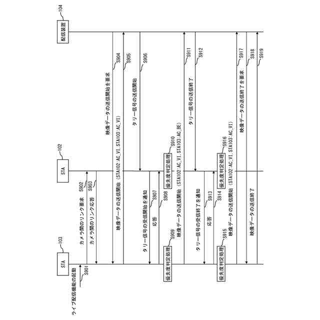 複数の端末が1つのアクセスポイント(AP)と通信を行い、同じカテゴリのデータを送信するシステムにおいて、各端末は送信データの種類に応じてアクセスカテゴリを付与する。このため、複数の端末が送信するデータのアクセスカテゴリが同じになり、上記の方法では、端末間で送信データの優先度を決定することができない。例えば、無線LAN内に存在する複数の端末が撮影した映像を、各端末からアクセスポイントを介して外部ネットワーク上の配信装置へ送信し、配信装置で当該映像を使用したライブ配信を行う場合を想定する。