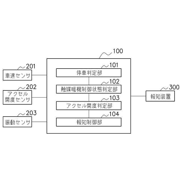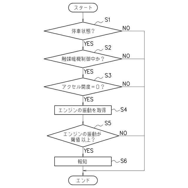 【解決手段】車両の制御装置100は、内燃機関1の排気ガスを浄化する触媒(12)を搭載した車両を制御する車両の制御装置であって、前記触媒(12)の暖機のために前記内燃機関1を運転する触媒暖機制御中に、前記内燃機関1の振動が閾値以上になった場合、報知装置300を用いて乗員に対して所定の報知を行う報知制御手段104を備える。