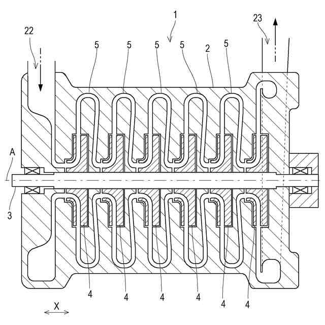 図1は、本開示の一態様に係る多段遠心ターボ圧縮機の全体構成を示す子午面図である。