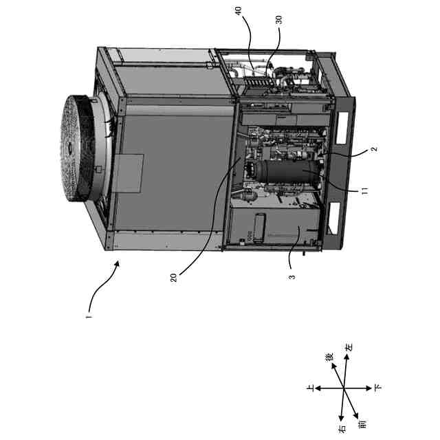 【解決方法】圧縮機と、ガスクーラと、膨張弁と、蒸発器と、を有する冷媒回路と、機械室の後側に配置され、前記冷媒回路内の冷媒を循環させる機器を電気的に制御する電子機器が収容される電装箱と、前記電装箱と、前記機械室の前面とを接続し、前記電子機器から発生した熱を前記機械室の外部に排出するダクトと、備える。