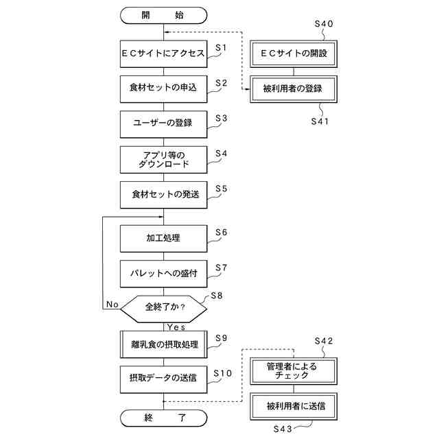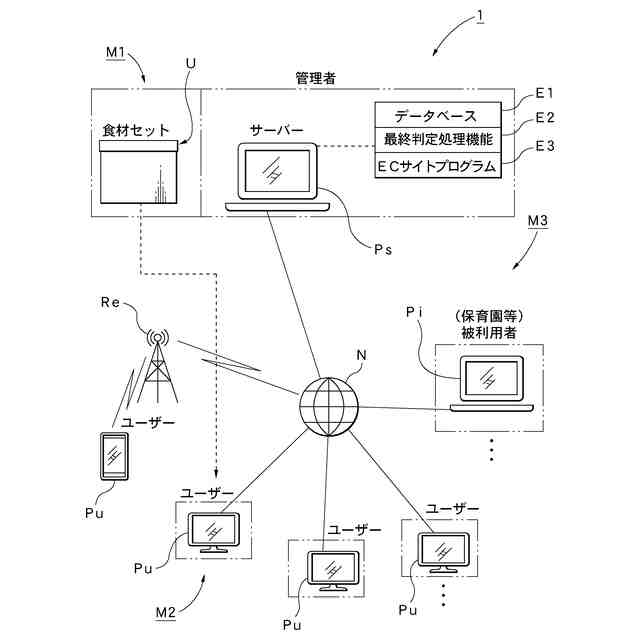 【解決手段】 ユーザー端末Pu…から管理者のサーバーPsにアクセスし、インターネットNのECサイトを介して乳幼児に必要な時期毎の複数の離乳食Fに係わる食材Foを組合わせた食材セットUを取得可能な食材セット取得手段M1と、食材Foに基づく離乳食F毎に乳幼児に摂取し、少なくともアレルギーの有無データを含む正常に摂取したか否かを判定する判定データに係わる摂取データDuを取得する摂取データ取得手段M2と、摂取データDuを事前に登録した被利用者のクライアント端末Piにデータ送信するデータ送信手段M3とを備える。